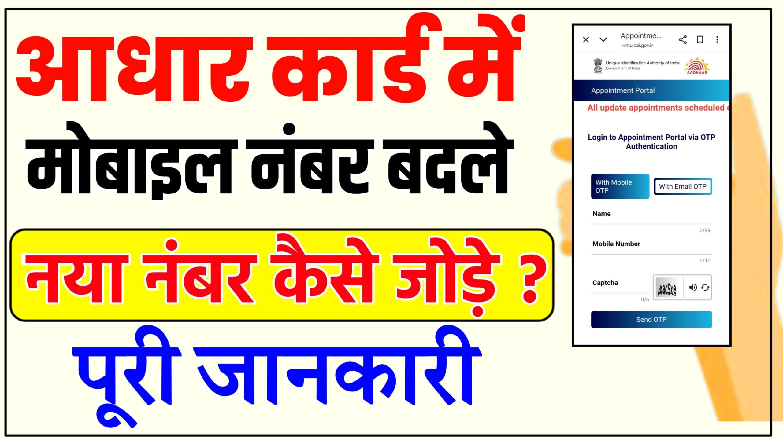 आज के आधुनिक युग में आधार कार्ड भारत के हर नागरिक का महत्वपूर्ण पहचान पत्र बन चुका है आधार कार्ड का उपयोग कई सारे जगह पर है सरकारी योजना का लाभ लेना है तो वहां पर भी आधार कार्ड की आवश्यकता पड़ेगी या किसी भी जगह पर सरकारी पोर्टल को लॉगिन करना है तो हर हर जगह पर आधार कार्ड की आवश्यकता पड़ती है तो आधार कार्ड बहुत जरूरी बन गया है क्योंकि OTP इसी नंबर पर आता है यदि आपका आधार कार्ड खो गया है या मोबाइल नंबर बदल गया है तो ऐसी स्थिति में आधार कार्ड में मोबाइल नंबर को बदलने या अपडेट करना बहुत जरूरी है तो आज की इसी आर्टिकल के माध्यम से जानेंगे के आधार कार्ड मोबाइल नंबर कैसे चेंज करें तो नीचे विस्तार से बताया गया है
