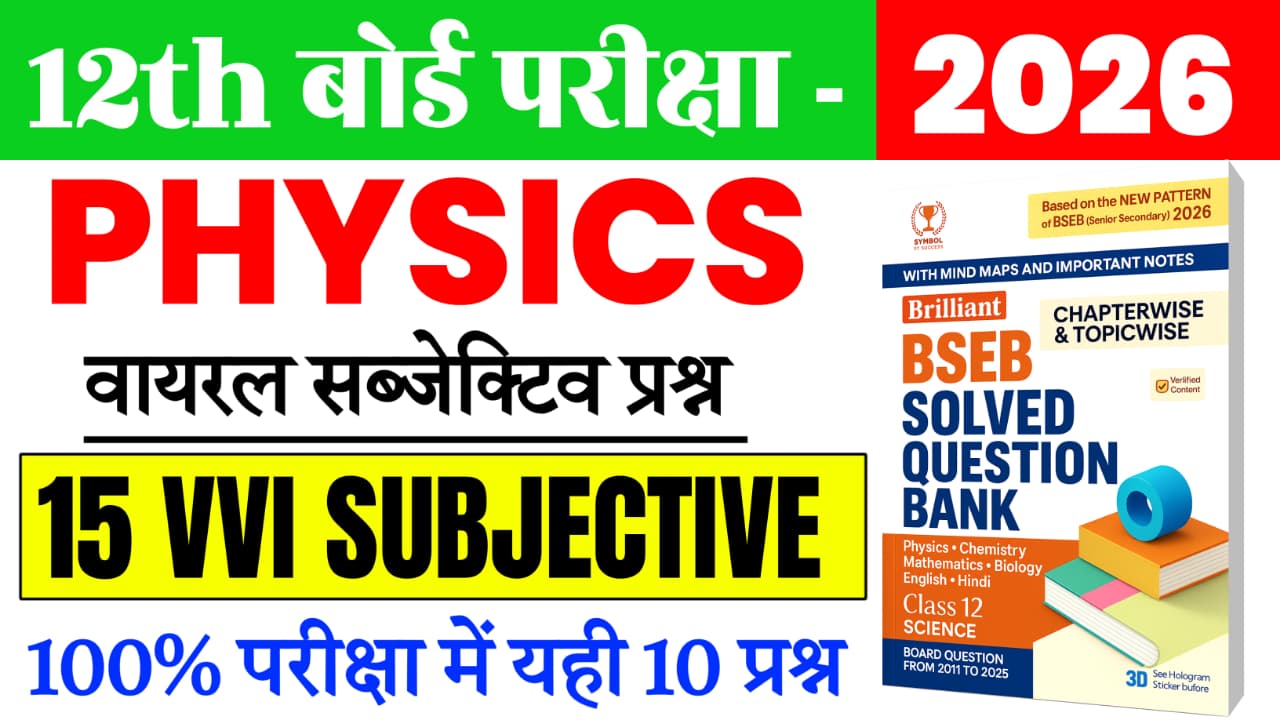 प्यारे बच्चों आप सभी बच्चों को ध्यान में रखते हुए मैं इस आर्टिकल के माध्यम से क्लास 12th फिजिक्स का टॉप 15 सब्जेक्टिव क्वेश्चन लिखा हूं जो सभी बच्चों के लिए बहुत ज्यादा इंपोर्टेंट है तो यह सारे प्रश्न को याद कर लीजिए क्योंकि यह परीक्षा के लिए बहुत-बहुत ज्यादा इंपोर्टेंट क्वेश्चन है इसीलिए सारे क्वेश्चन पर ध्यान रखकर इस सारे प्रश्न को हर एक पॉइंट को ध्यान से याद कर लीजिए परीक्षा में आने की पूरी संभावना है तो हर एक बच्चे भी भी आई सब्जेक्टिव क्वेश्चन को हर एक बच्चे याद अवश्य कीजिए